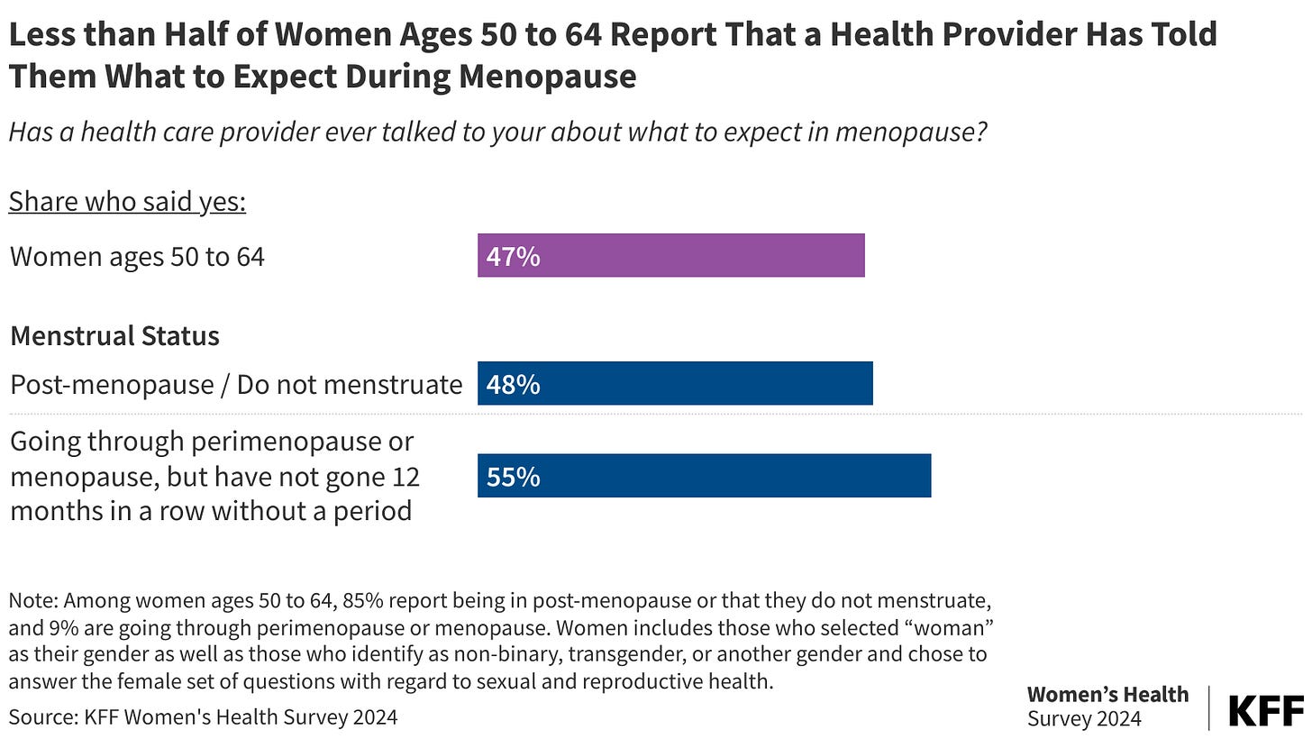 Despite the growing conversation around hormone health, actually accessing care is still a challenge—especially for menopause and gender-affirming care. Menopause care is still severely under-discussed. Fewer than 50% of women aged 50-64 have had a conversation with their doctor about menopause.